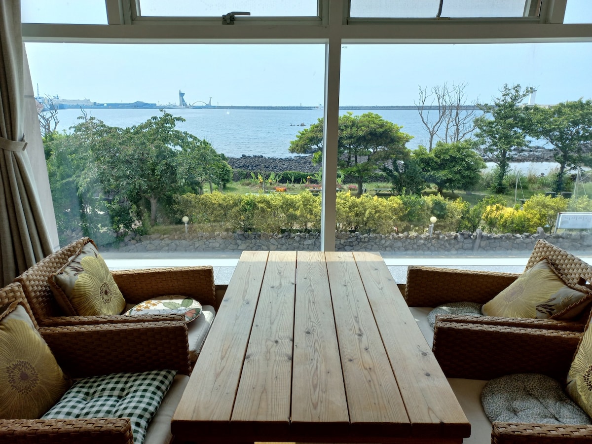 Welcome to U + Sea Pension. A private, aesthetic retreat on the quiet Namtae Coastal Road. Experience the breathtaking South Sea of Jeju through sunning floor-to-ceiling windows. We offer high-quality bedding and clean, dedicated units perfect for small groups(couples, friend, families). Enjoy the warm sun and ocean air on your private terrace or watch the winter sunrise from your room. [Prime Location] Centrally located on the south coast, U+Sea is ideal for exploring both the East and West.