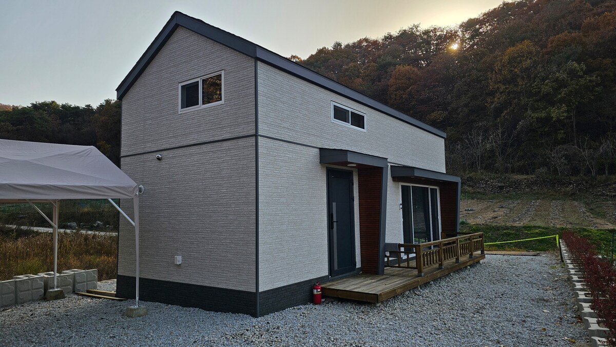 별채로 단독사용이고 유기농마을이라 공기도 깨끗합니다. 귀농하여 유기농으로 농사를 짓습니다 팬션단지 아닌 시골마을이라 시내처럼 큰마트는 없어요. You can use it alone as a separate building. On the 1st floor, there is a living room, kitchen, toilet, and utility room, and on the 2nd floor, there is a dirt bed and deck.When you open your eyes in the bedroom, you can enjoy the sunshine and countryside through the window. The air is clean because it is an organic village. You can hear the sound of unnamed birds. It's a rural village.