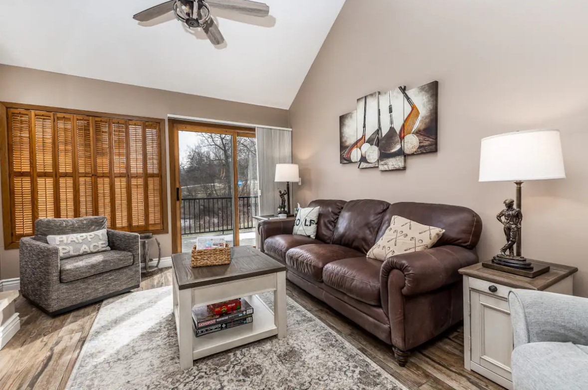 ⭐King bed with plush bedding in a peaceful, private setting ⭐Wood-burning fireplace — perfect for cozy evenings together ⭐2-minute drive to the North Golf Course, driving range, & Stonedrift Spa ⭐Wooded nature views & tranquil surroundings for a relaxing escape ⭐Just 12 minutes to downtown Galena — excellent shopping, dining, & sight-seeing ⭐Access to Owner’s Club amenities including indoor pool & fitness center ⭐15 miles to Chestnut Mountain Skiing ⭐2 Full bathrooms & newer full size sofa bed