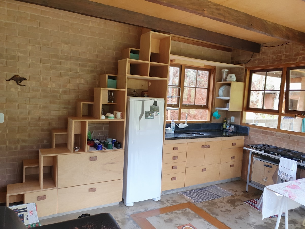 Casinha super confortável, com vista especial da Mantiqueira. Área privada dentro do nosso sitio onde temos mais 2 casas. Por 3 anos moramos nesta casa. Ela foi projetada pensando na otimização do espaço e no conforto para se viver integrado com a natureza. Construída com materiais ecológicos, madeiras de demolição e técnicas de permacultura. A casa recebe a luz do sol o dia todo. A noite é possível curtir o céu estrelado sem precisar enfrentar o friozinho da montanha.