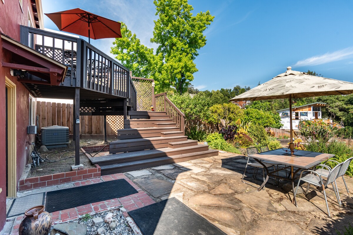 Bu unikal, yaxşı təchiz olunmuş, 1 çarpayılıq sevimli kiçik studiya (sevdiyimiz) əsas evimizdən ayrılıb və hasarlanıb. Yan qapıdan ayrıca girişi var və öz şəxsi arxa göyərtəsidir, oturma və yemək sahəsi var. Bu, Sausal Krik və Dimond Parkına baxır. Krek boyunca böyüyən hündür söyüd göyərtəyə mükəmməl məxfilik verir və axan yarığın sakit səsi ilə (quru mövsümdə deyil) şəhər şəhərində olduğunuzu demək olar ki, unudacaqsınız.
