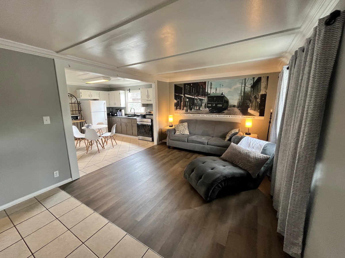 Stay just minutes from downtown Franklin in this cozy 2-bedroom home. It's perfect for traveling professionals, small families, or weekend getaways. Enjoy a fully equipped kitchen, fast WiFi, and a dedicated workspace—ideal for remote work or longer stays. Relax in the comfortable living room with streaming TV, or unwind outside on the large deck with a fenced yard. • 10 minutes to Johnson Memorial Hospital • 30 minutes to Indianapolis • Close to local shops, dining, and events