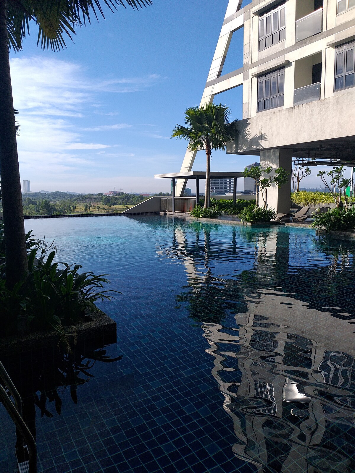 This is a spacious 2Bedroom unit perfectly fit for guests up to 5 pax with total of 1 king size bed 1 queen size bed 1 single bed High floor with high view. 1. Basketball Court 1. Gym Room 2. Function Hall 3. Lounge 4. Library 5. Manicure Shop 6. Mini Theatre 7. BBQ Deck 8. Swimming Pool 9. Sauna 10. Jacuzzi 11. Game room (Pool Table, PS Room, Darts and more) 12. Laundry 13. Mini Market -Sky Garden Guest are not allow to smoke in the room , please smoke at the balcony if needed