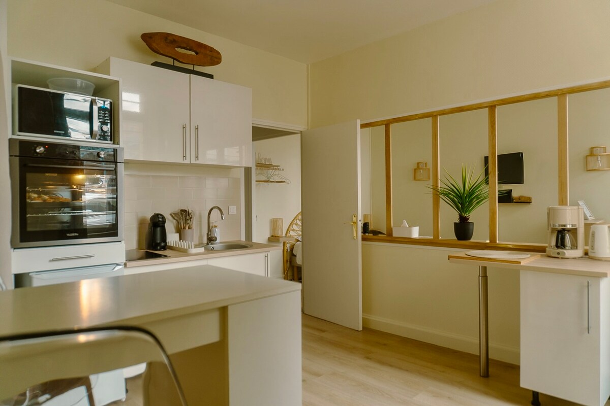 Appartement au cœur du village champenois de Verzy. Duplex neuf, cuisine équipée (four, lave-vaisselle, plaques, micro-ondes), belle véranda, chambre à l'étage lit double, couchage enfant, lit parapluie, SdB-WC séparés.Climatisation mobile. Parking et jardin publics sur place (voir photo). Appartement NON FUMEUR. Wifi, télévision. Le logement possède une entrée privée. Coin accueil café et thé, eau fraiche.