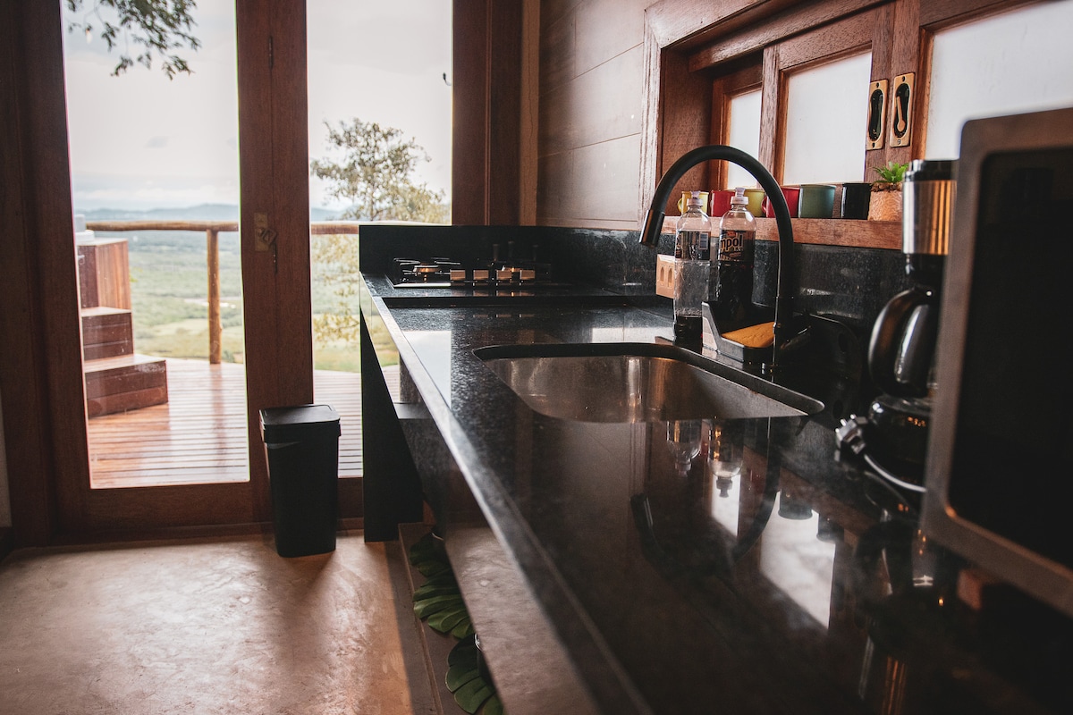 O Loft Botânico é um chalé de eucaliptos no meio da Mata Atlântica. Decorado em estilo industrial com peças confeccionadas artesanalmente. Possui um mezanino com uma cama e banheiro com banheira de hidromassagem. Oferecemos roupa de cama e banho. A cozinha tem geladeira, microondas e fogão. Está equipada com panelas , pratos, talhares e copos . Na sala tem dois sofás que podem ser transformados em camas e um banheiro com chuveiro. E o mais importante o por do sol é incrível!