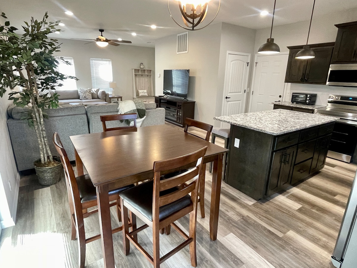 MSSU və Webb City-nin canlı kənarlarının yaxınlığında rahat bir şəkildə yerləşən yeni yenilənmiş evimiz qonaqlamanız üçün mükəmməldir. Həm duş, həm də vanna seçimlərinin olduğu 2 tam vanna otağı ilə təchiz edilmiş üç geniş yataq otağının rahatlığından zövq alın. Cəlbedici tərtibat onu bir gün araşdırdıqdan sonra dincəlmək istəyən ailələr və ya qruplar üçün idealdır. Ulduzların altında axşam yığıncaqları üçün mükəmməl od çuxuru olan gözəl işıqlandırılmış arxa verandamızda dincəlin.