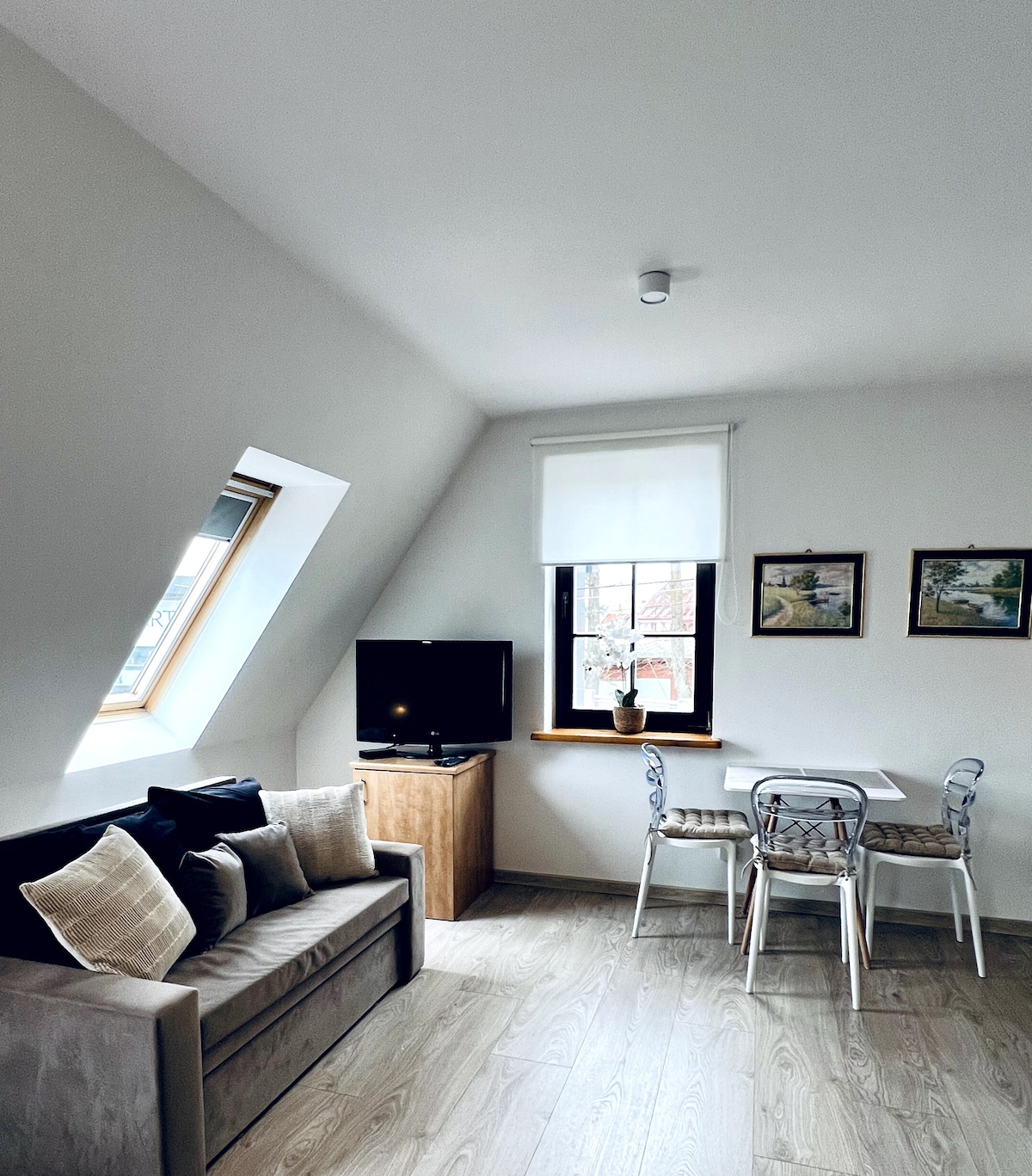 Luxtorpeda dünyadan uzaqlaşmaq istəyən cütlük üçün dizayn edilmiş mənzildir. Qlamur üslublu interyer, yataq otağında sərbəst dayanan vannası və göl, çəmənlik və meşəyə baxan eyvanı var. Burada səhərlər səssizlikdə qəhvə içir, axşamlar isə şərab içib gün batımını seyr edirlər. Bura ildönümü, nişan və ya bildirişsiz romantik həftəsonu üçün mükəmməl yerdir. Göl sahilinə cəmi 100 m, çimərliyə 400 m və Vilçi Şanetsə cəmi 2 km məsafədə. Meşənin ətrafında trekking və velosiped yolları var. Mazuriya ərazisini araşdırmaq üçün mükəmməl baza