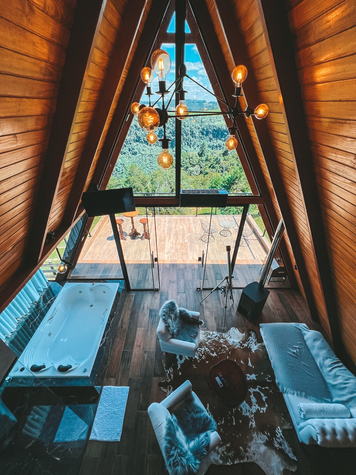 Kabinəmiz şəhər mərkəzindən cəmi 15 km məsafədə Pomerode/SC-də füsunkar Rota do Enxaimel-in sonunda yerləşir. Yerli istehsalçıların hazırladığı ləzzətli səhər yeməyi ilə müşayiət olunan, artıq gündəlik qiymətə daxil olan rahat və orijinal qonaqlama təklif edirik. Kabinə dincəlmək, yenidən əlaqə qurmaq və unikal anlar yaşamaq üçün əsl sığınacaq yeridir. Burada unikal təcrübə yaşayırsınız: rahatlıq, məxfilik və təbiətlə bir yerdə təmas.