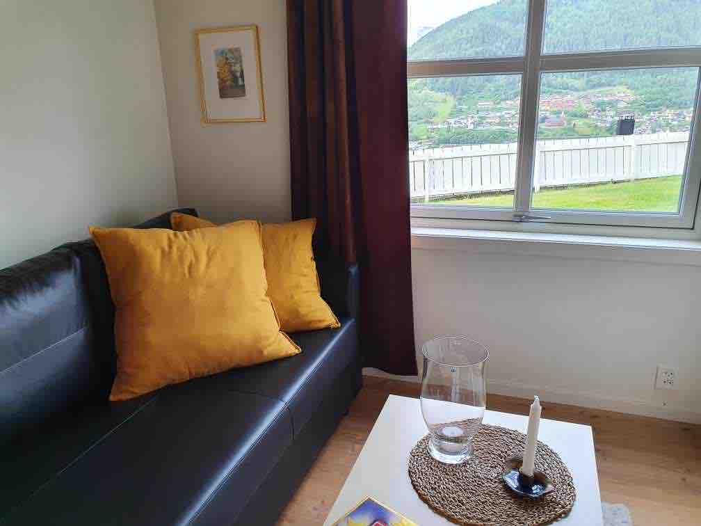 Gözəl fjord mənzərəsi olan iki nəfərlik rahat mənzil minimum 2 günlük icarəyə verilir. Mənzildə ikiqat çarpayıya birləşdirilə bilən 90 x 200 ölçülü iki çarpayı, açıq havada mebel, induksiya və soba ilə soba, dondurucu bölməsi olan soyuducu, qəhvə maşını, çaydan və müxtəlif çəngəl-bıçaq/başqa mətbəx ləvazimatları (qabyuyan maşın deyil), internet, parabolik kanallar, duş/tualet, bütün mənzildə döşəmə istiliyi var. Mənzil kənd yerlərindəki alma bağımızda yerləşir.
