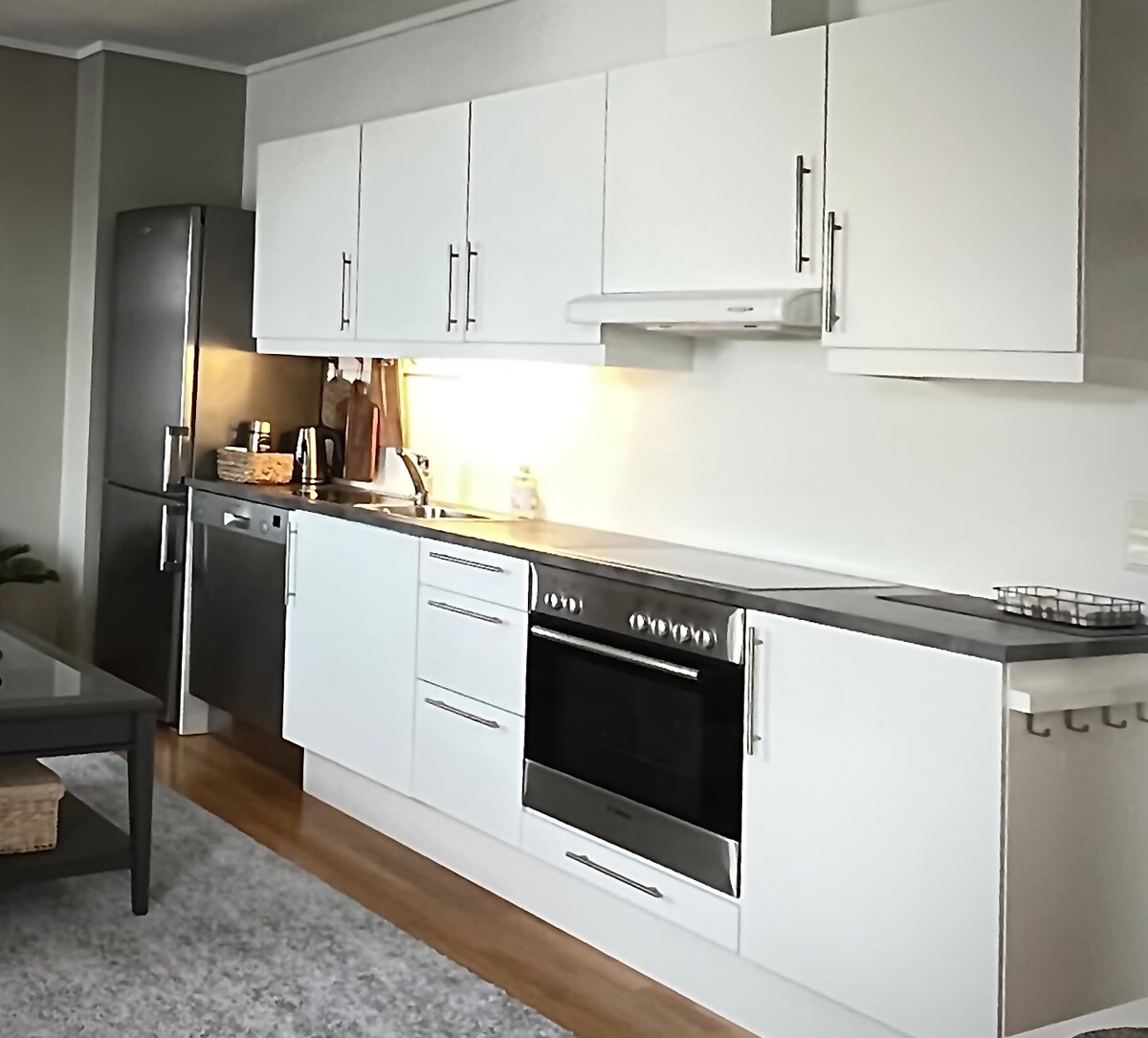 Gözəl fjord mənzərəsi olan iki nəfərlik rahat mənzil minimum 2 günlük icarəyə verilir. Mənzildə ikiqat çarpayıya birləşdirilə bilən 90 x 200 ölçülü iki çarpayı, açıq havada mebel, induksiya və soba ilə soba, dondurucu bölməsi olan soyuducu, qəhvə maşını, çaydan və müxtəlif çəngəl-bıçaq/başqa mətbəx ləvazimatları (qabyuyan maşın deyil), internet, parabolik kanallar, duş/tualet, bütün mənzildə döşəmə istiliyi var. Mənzil kənd yerlərindəki alma bağımızda yerləşir.