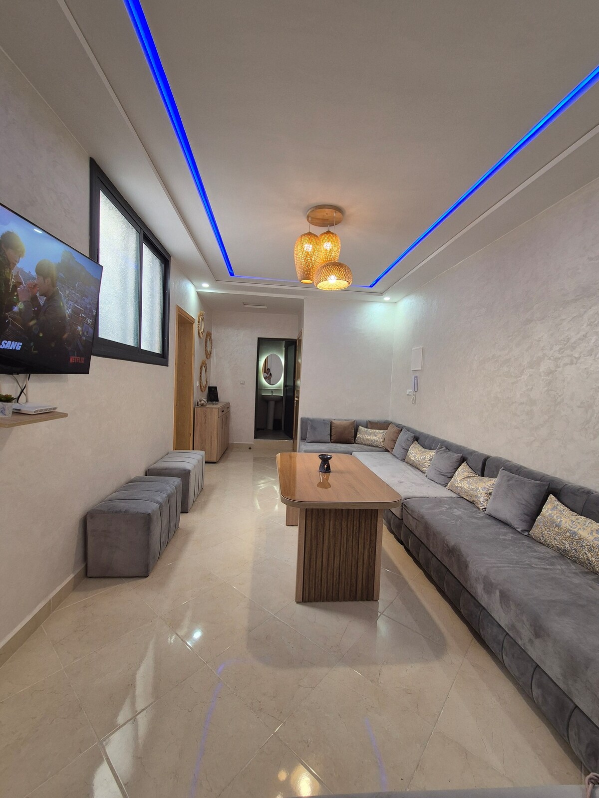 Bütün sayt və imkanlara, restoranlara, supermarket kafesinə və s. yaxın çimərliyə 15 dəqiqəlik məsafədə yerləşən bu tamamilə yeni və unikal qonaqlama yeri çimərlikdən sonra rahat axşamlarınız üçün barbekü və LED işıqlandırması olan ayrıca ailə cakuzisindən də zövq alır. Həmçinin kondisioneriniz də olacaq. PULSUZ PARKİNQ və baxıcı . Səhər yeməyi qəlyanaltısı, msemen harcha, hər şey binanın ətəyindədir. Sakit ailə qonaqlaması üçün təhlükəsiz mənzil.