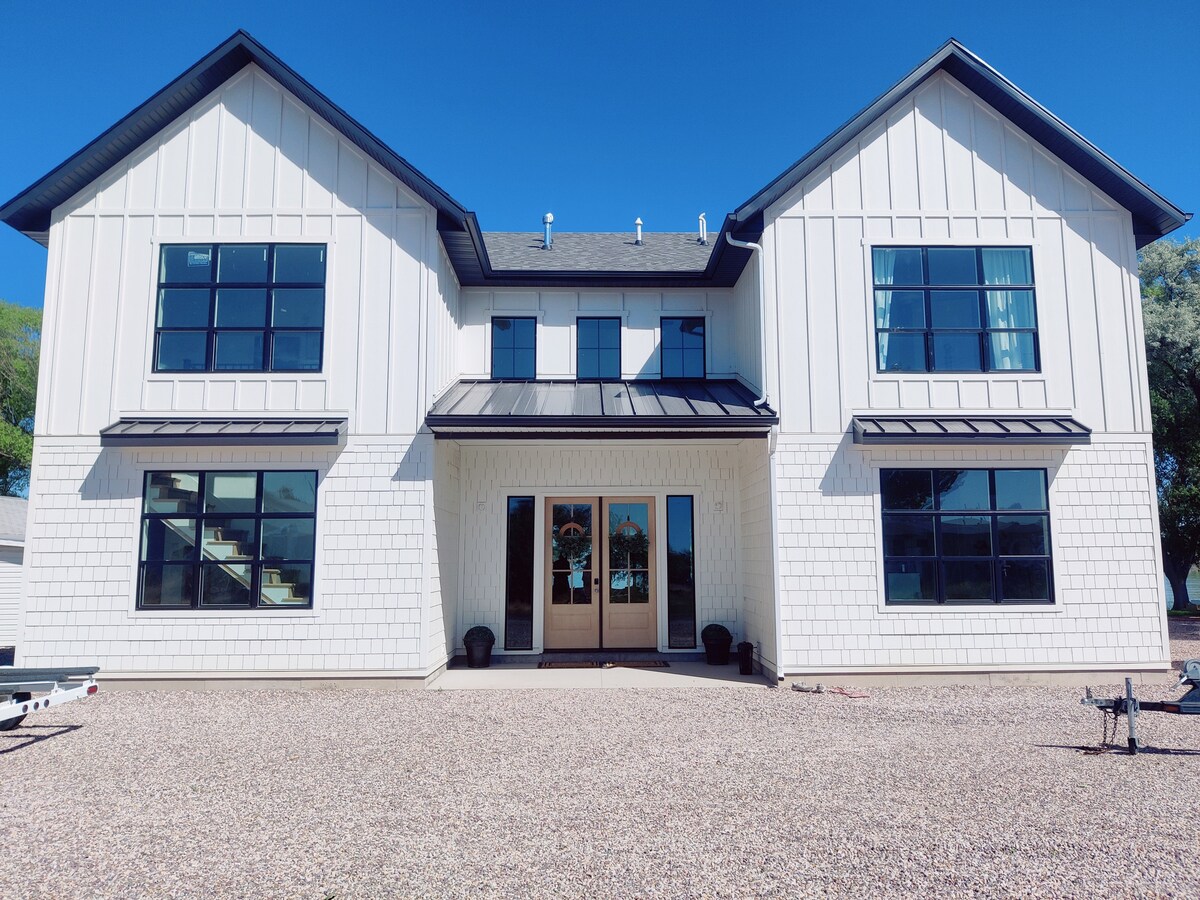 Enjoy a beautiful, newly built residence, perched right on the banks of a hidden reservoir in Delta, Utah. It features an open floor plan with high ceilings and an abundance of natural light. Accommodating up to twenty-four guests, this residence seamlessly blends modern decor and tasteful furnishings, creating a tranquil and well-organized ambiance. Step outside to savor the expansive outdoor patio, second-story balcony and manicured lawn, sprawling across a generous half-acre of land.