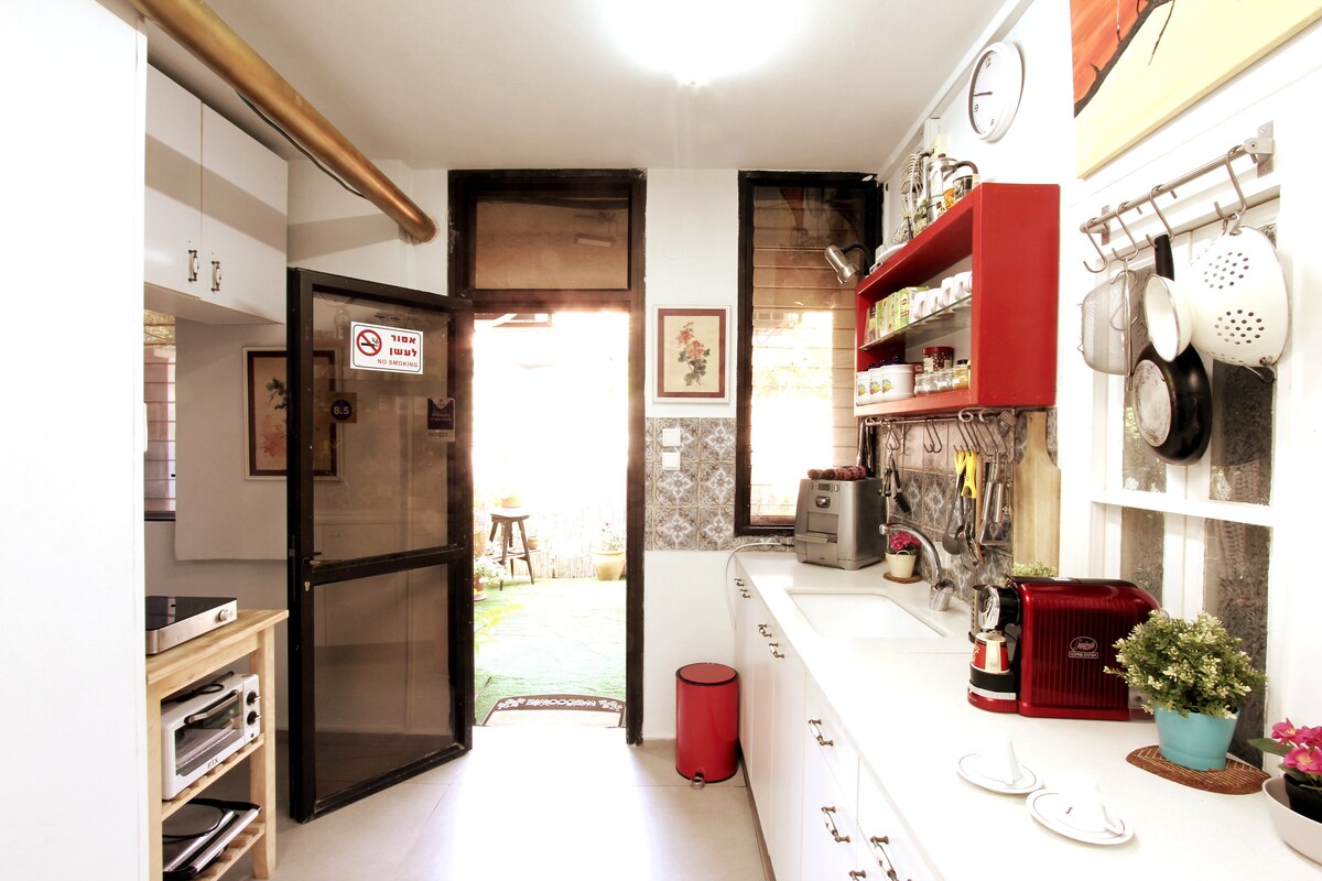 Şəhər daxilində unikal sakit mühitdən zövq alın. Xüsusi girişi olan qonaq süitamız birinci mərtəbədədir və istirahət, yemək və istirahət üçün gözəl verandaya, qazona və bağa baxır. Mövsümdə bağımızdan orqanik tərəvəz və meyvələrdən zövq alın. Küçədə parkinq pulsuzdur. Tel-Əviv, Yerusəlim və TLV BG hava limanına asan giriş. Avtomobil icarəsi və ictimai nəqliyyata piyada 5 dəq. Mini marketə piyada 1 dəq. Supermarketlərə 10 dəqiqəlik məsafədə. * Daxili təhlükəsiz yeraltı sığınacağımız var (Mamadממ״ד)*
