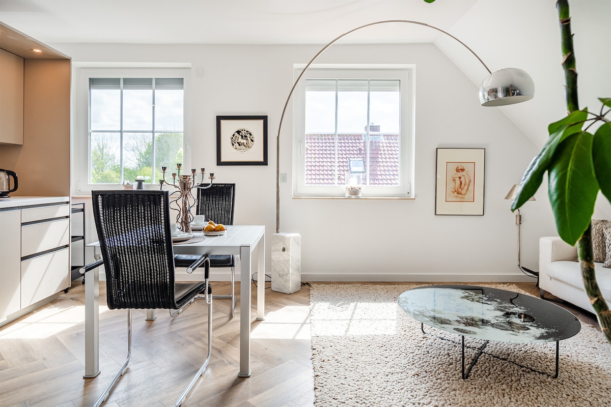 19-cu əsrə aid bu tarixi bina Kutterhafendəki məşhur dondurma salonunun arxasında, lakin sakit bir tıxac yerində yerləşir. Kəndin mərkəzindən daha yaxın və mərkəzi bir yer ola bilməz! Burada təxminən 150 kvadratmetr iki qonaq otağı, iki mətbəx, üç yataq otağı və iki hamam otağı tapa bilərsiniz!