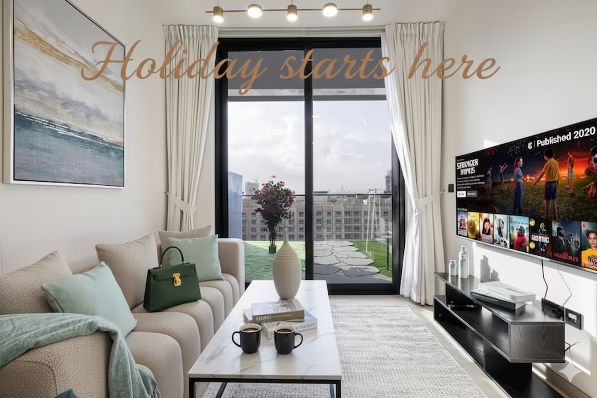 Dubay JVC-nin mərkəzində yerləşən, 4 nəfərə qədər qonaq üçün mükəmməl olan müasir 1 yataq otaqlı mənzil. Rahat divan-çarpayı, dəbli yataq otağı, tam təchiz olunmuş mətbəx, sürətli Wi-Fi və rahat balkonla işıqlı yaşayış sahəsindən zövq alın. Binada hovuz, idman zalı, parkinq və 24/7 təhlükəsizlik var. "Circle Mall" AVM-nə, kafelərə, supermarketlərə və əsas yollara yaxın olan bu mənzil rahatlıq və rahatlıq axtaran cütlüklər, ailələr və ya işgüzar səyahətçilər üçün idealdır.