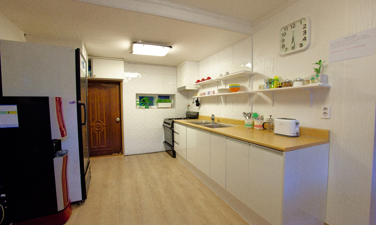 Evim Hongdae stansiyasından 1 dəqiqəlik məsafədə yerləşir. Trasportasiya rahatlığı üçün mükəmməl bir yer. -Siz beynəlxalq Hava Limanından Arex (Airport Express Rail) ilə Hongik Universiteti Stansiyasına birbaşa gələ bilərsiniz. Heç bir tranzit olmadan inchen beynəlxalq hava limanından. -Siz Hongik Universiteti stansiyasından piyada 1 dəqiqəlik məsafədə yerə gələ bilərsiniz. -Near Hongdae məhəlləsi, Yeonnam-dong, Hongdae küçəsində xəfif kafe və restoranlar, maraqlı barlar və klublar var. Evinizin qonaqlaması kimi ən təmiz otaq və komfortlu evi təmin edəcəyimizə söz veririk.