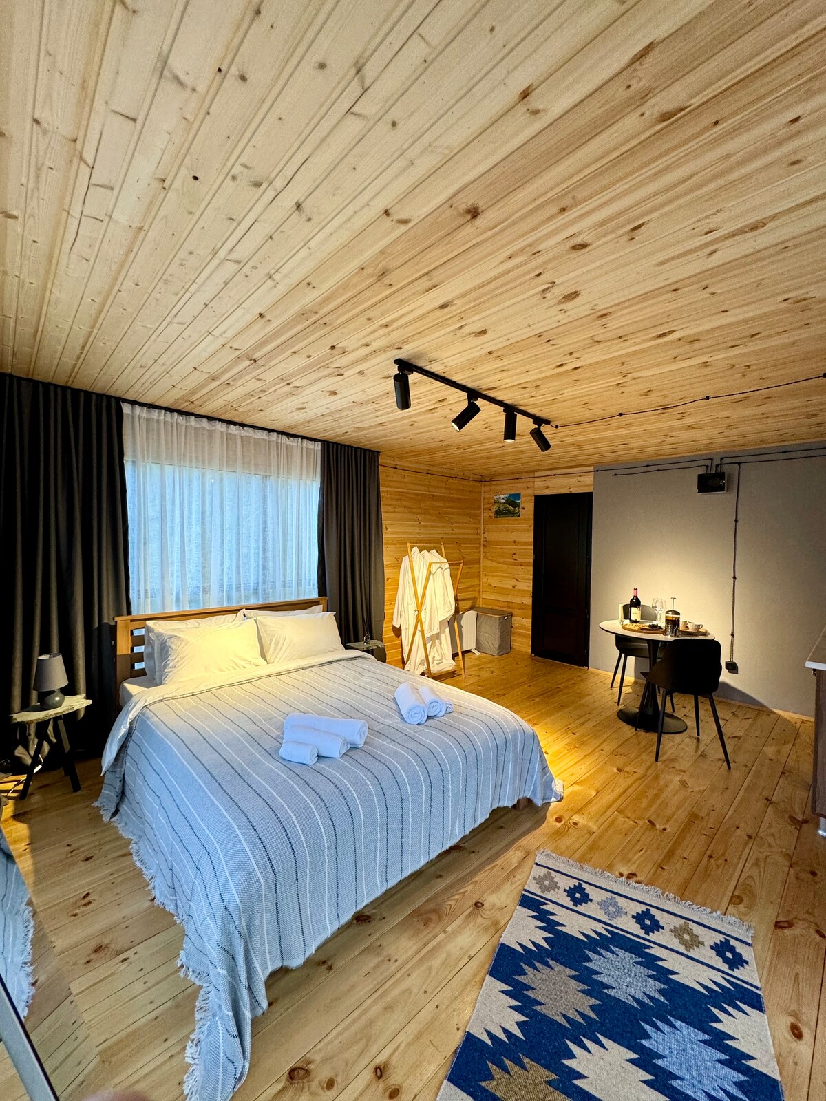Məkan çox gözəl və özəldir, mənzərələr çox xüsusi və pulsuzdur, əla Kazbegi dağlarının panoramik mənzərəsi, böyük ilan və açıq havada mebel olan Privat Böyük terrasımız, qeyri-adi zirək yataq otağımız var.