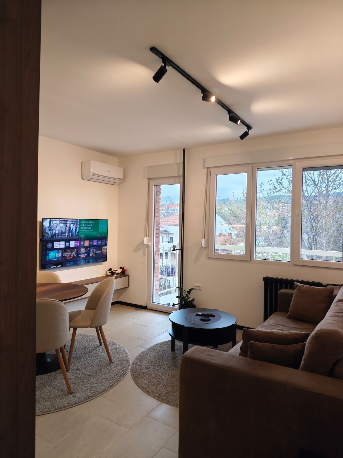 Mənzil uzaqdan işləyirsinizsə, ailənizlə ziyarət edirsinizsə və ya Nişdə rahat bir baza istəyirsinizsə, bir neçə gecəlik və ya həftəlik qonaqlamalar üçün əladır. Burada çox yer, sürətli Wi-Fi, mətbəx, paltaryuyan maşın var... Mənzildə dörd nəfərə qədər qonaq yerləşə bilər: ikisi yataq otağında, ikisi isə qonaq otağındakı divan-çarpayıdan istifadə edə bilər. Qışda isti, yayda isə xoş sərin olur (kondisioner mövcuddur). Kafelər, restoranlar, ticarət mərkəzi və şəhər mərkəzi 5-10 dəqiqəlik piyada məsafədədir.