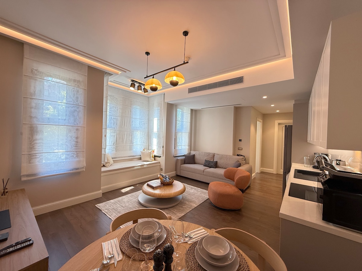 Mənzil sizi rahat interyer və möhtəşəm Tarixi Yarımadanın mənzərəsi ilə qarşılayır. Bu gözəl mənzərə hər mövsüm və günün hər saatında balkondan daha da sehrli olur.Bütün mebellər eksklüziv dizayn markalarından seçilir və lüks zonada özünüzü rahat hiss etməyinizi hədəfləyir. Firuzəyi plitələr əl işi olan bu sehrli yaşayış məkanına şəxsiyyət verir. Divarlarda yenidən gözəl xüsusi döşəmə plitələri ilə gözəl harmoniya var.