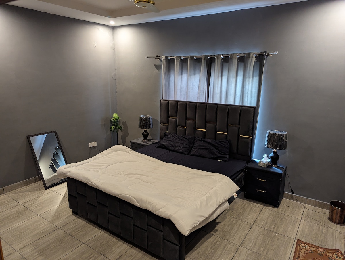 Furnished apartment in Model Town, Multan. Includes AC, Wi-Fi, secure parking with guard, and 24/7 security. Ideal for Couples, Invidious or professionals. Basic Rs. 6,000/night (Essentials only) Without AC Standard Rs. 8,000/night (Full amenities) With AC Premium Rs. 10,000/night (Luxury stay) With AC 📍 Near Ahmed Sweets Inbox to book now!