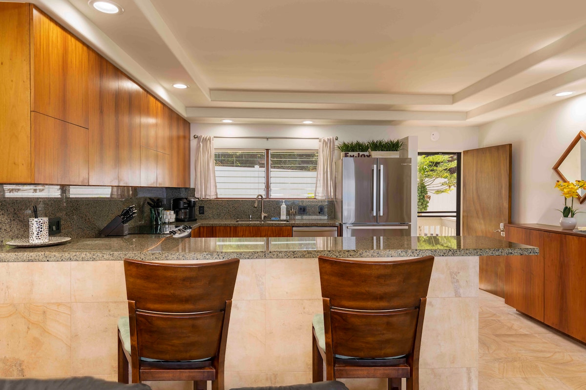 Bu tam evdə Sehrli Qumlar Çimərliyindən qısa məsafədə qalın. Bu üç yataq otağı və üç və yarım hamam evinə açıq havada duş və hamam otağı, pinq-ponq masası və öz ağac eviniz daxildir. Bu, agentlik və on-island sahibi ev sahibləri olmayan qanuni və icazə verilən tətil icarəsidir. Çimərlikdən sonra şam yeməyinizi yeyərkən lanayda qamakda vaxt keçirə bilərsiniz. Havay adasını və Kailua-Kona şəhərindən cəmi üç mil məsafədə araşdırmaq üçün mükəmməl yer.