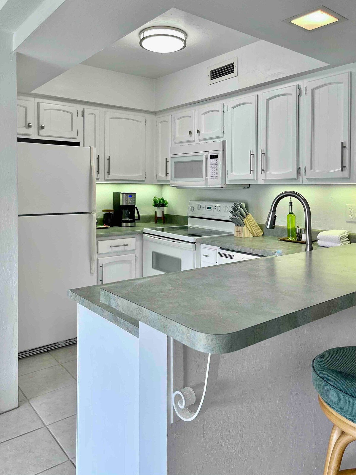 🌊Havayın Kailua-Kona şəhərində, okean sahilində, ən üst mərtəbədə yerləşən iki yataq otaqlı kondominium. İçəri daxil olun və döşəmədən tavana qədər uzanan pəncərələrdən və okean kənarındakı özəl eyvanınızdan gözəl okean mənzərəsini seyr edin - cənnətə xoş gəlmişsiniz! 🌴 🌬Bütün məkanlarda kondisioner, liftə giriş (heç bir pilləkən yoxdur!), tamamilə yenilənmiş, yüksək keyfiyyətli mebellər. Balkondan aşağıdakı qabarma-çəkilmə hovuzlarında dəniz tısbağalarını izləyin, sahildəki delfinləri müşahidə edin və möhtəşəm gün batımlarından zövq alın. Bütün bunlar okeandan cəmi bir neçə addımlıq məsafədədir.