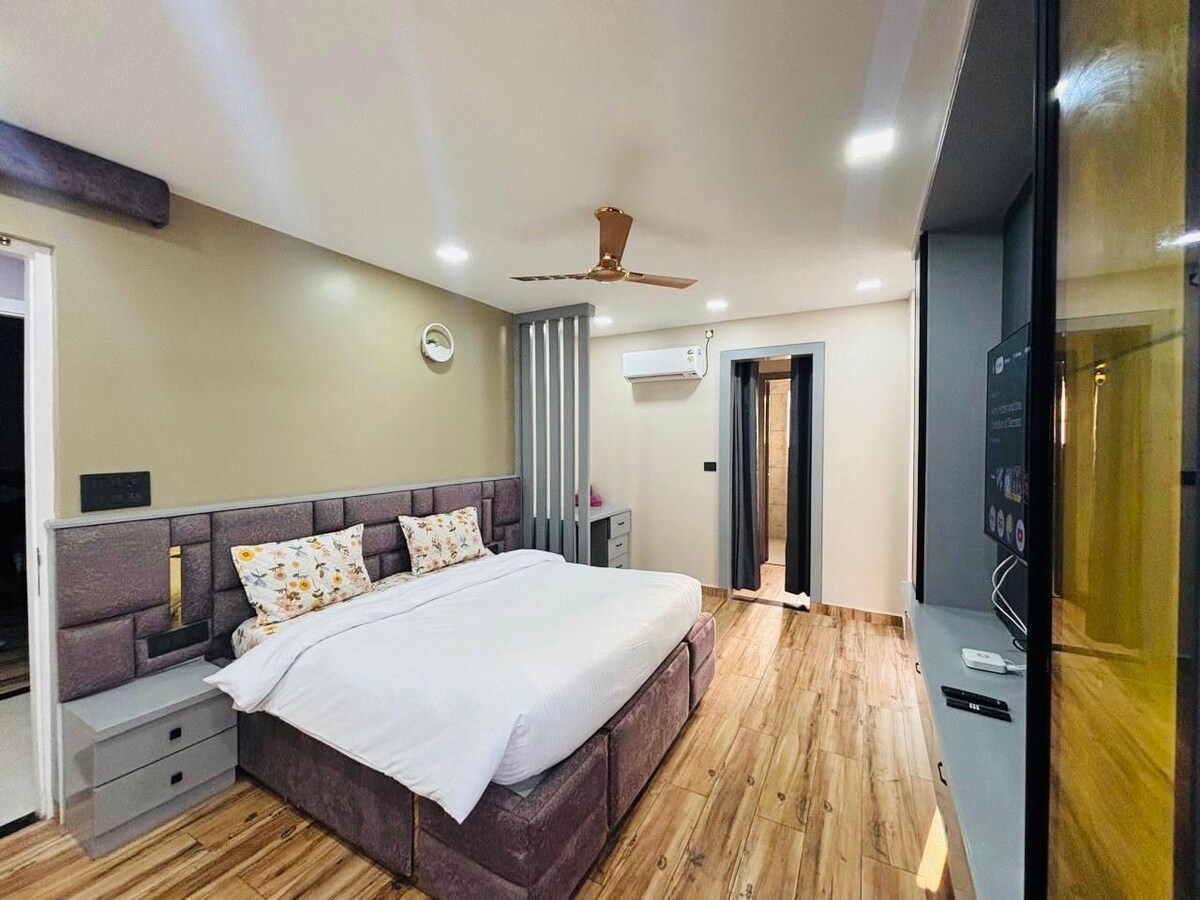 Wake up to the hills, unwind with the sunset. In the heart of Dehradun, this elegant open-concept studio invites you into a world where design meets ease. Sunlight pours through floor-to-ceiling glass, framing distant peaks and golden evenings. A sleek wooden partition defines the space, while plush furnishings and a fully equipped kitchen promise comfort without compromise. Whether you’re staying in or stepping out, every app Uber, Ola, Zomato—works around the clock. Your perfect Dehradun stay