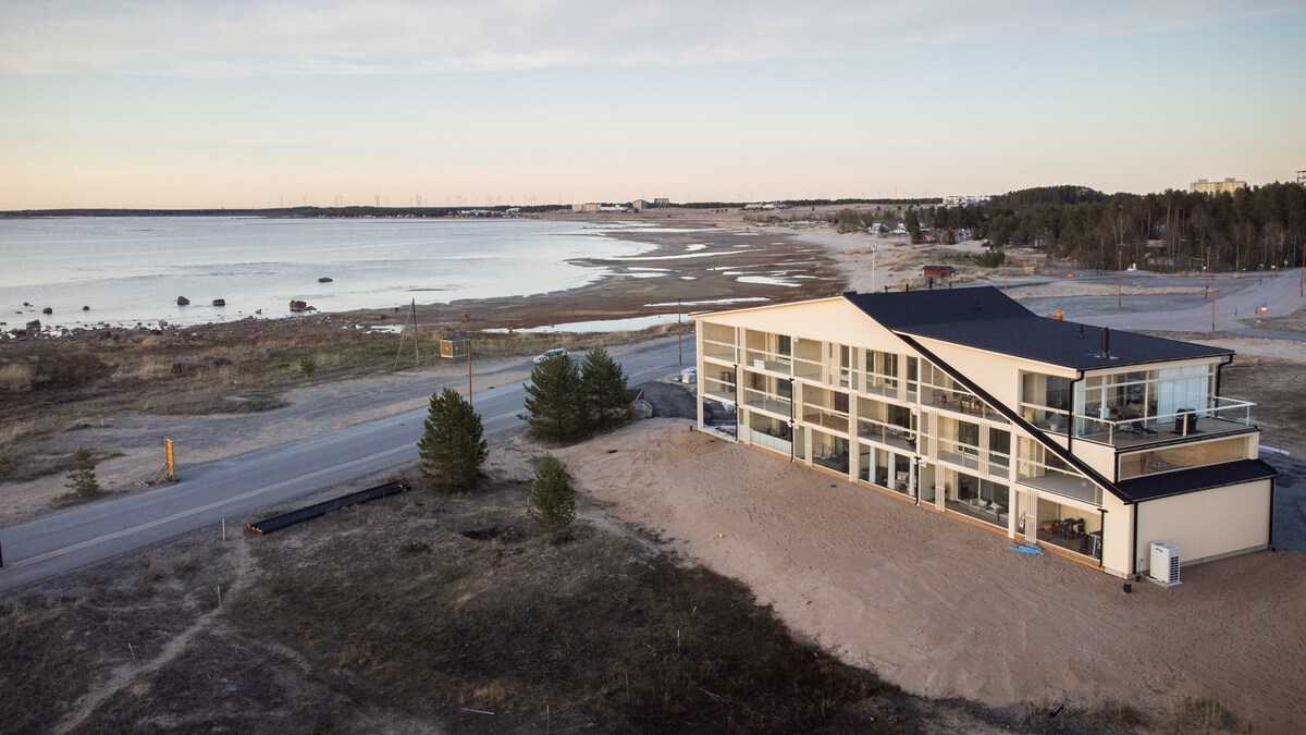 Marina Sunset Resort Kalajoki Sandbanksında, dənizin düz yanında heyrətamiz bir mənzildir. Mənzildə 4 nəfər qala bilər. Mənzildə yataq qəlyanaltısında böyük ikinəfərlik çarpayı və yayıla bilən divan çarpayı var (ayrıca yataq otağı deyil). Saunadan dəniz mənzərəsinə heyran ola bilərsiniz. Mənzilin dəniz sahilinə birbaşa çıxışı olan geniş şüşə terrası var. Göyərtədə elektrik manqalı var. Mətbəx mükəmməl təchiz olunub. Mənzilin qarşısında pulsuz parkinq. İki nəfərlik fitnes mərkəzinə pulsuz ziyarət!