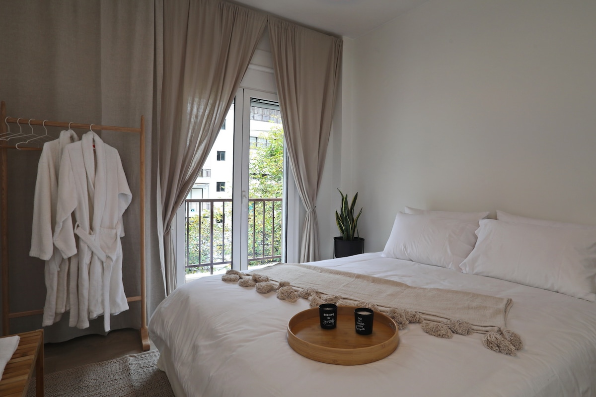 Our modern, minimalist studio offers the perfect blend of comfort and convenience. Located in a safe, peaceful neighborhood, it’s just 20m from Martiou Metro Station and only 800m from Thessaloniki’s beautiful boardwalk. Whether you're here for business or leisure, you'll enjoy quick access to the city center, only 5 minutes away. It is ideal for those seeking a peaceful retreat with all the city's attractions within reach. Ready to make your stay in Thessaloniki unforgettable?!