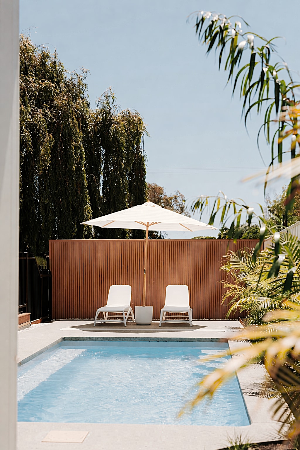 Architecturally designed villa sleeps 4 people offering private plunge pool and tropical planting. Boutique style accomodation at its best, 200m from river, beach and town centre. Stay in style at Sols Place. 180sqm of designer privacy. Bright, modern, full kitchen, coffee machine, wifi, flat screen TVs, pool, entertaining area, BBQ, outside shower, deluxe linen, AC, comp wine on arrival. Separate entry via shared driveway, carport parking. Room for your boat/jetski out front.