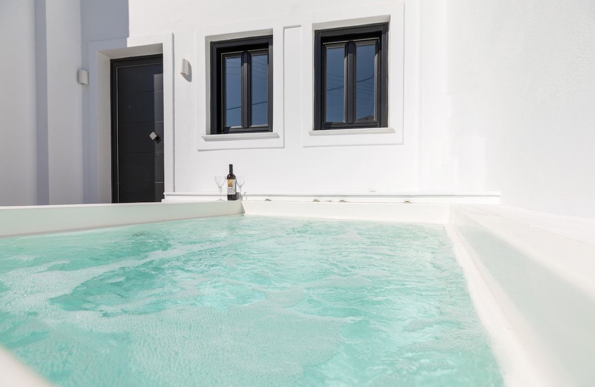 Bu lüks villa ən yaxşı mövqeyə malikdir və Kaldera və Egey dənizinin məşhur mənzərəsi olan xüsusi terraslara malikdir. Üst terrasda qızğın Cakuzi və rahat günəş şuaları var. Cakuzinin yanında açıq havada mebel var. Burada unudulmaz mənzərə ilə səhər yeməyi və şam yeməyindən zövq ala bilərsiniz. Gündəlik səhər yeməyi və təmizlik qonaqlamanızı rahat edir. Yataq otağında ayrıca hamam otağı var. Gəzinti məsafəsində restoranlar,barlar, muzeylər və supermarketlər tapa bilərsiniz.Yaxşı çatdırılma mövcuddur.Free wi-fi