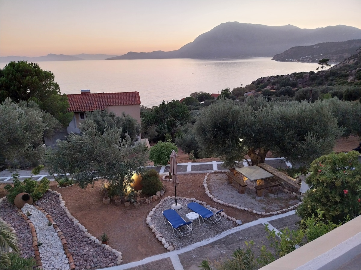 Qayalı çimərliyin qarşısında dincəlmək və yunan günəşindən zövq almaq üçün müxtəlif açıq hava məkanları olan ənənəvi daş ev. Egey dənizinin daimi mənzərəsi müxtəlif verandalar və qamaklarla tamamlanır. Karlovassi şəhərindəki köhnə fabriklərin tarixi ərazisi Samosu kəşf etmək üçün mükəmməl şərait və ideal başlanğıc nöqtəsi təklif edir.