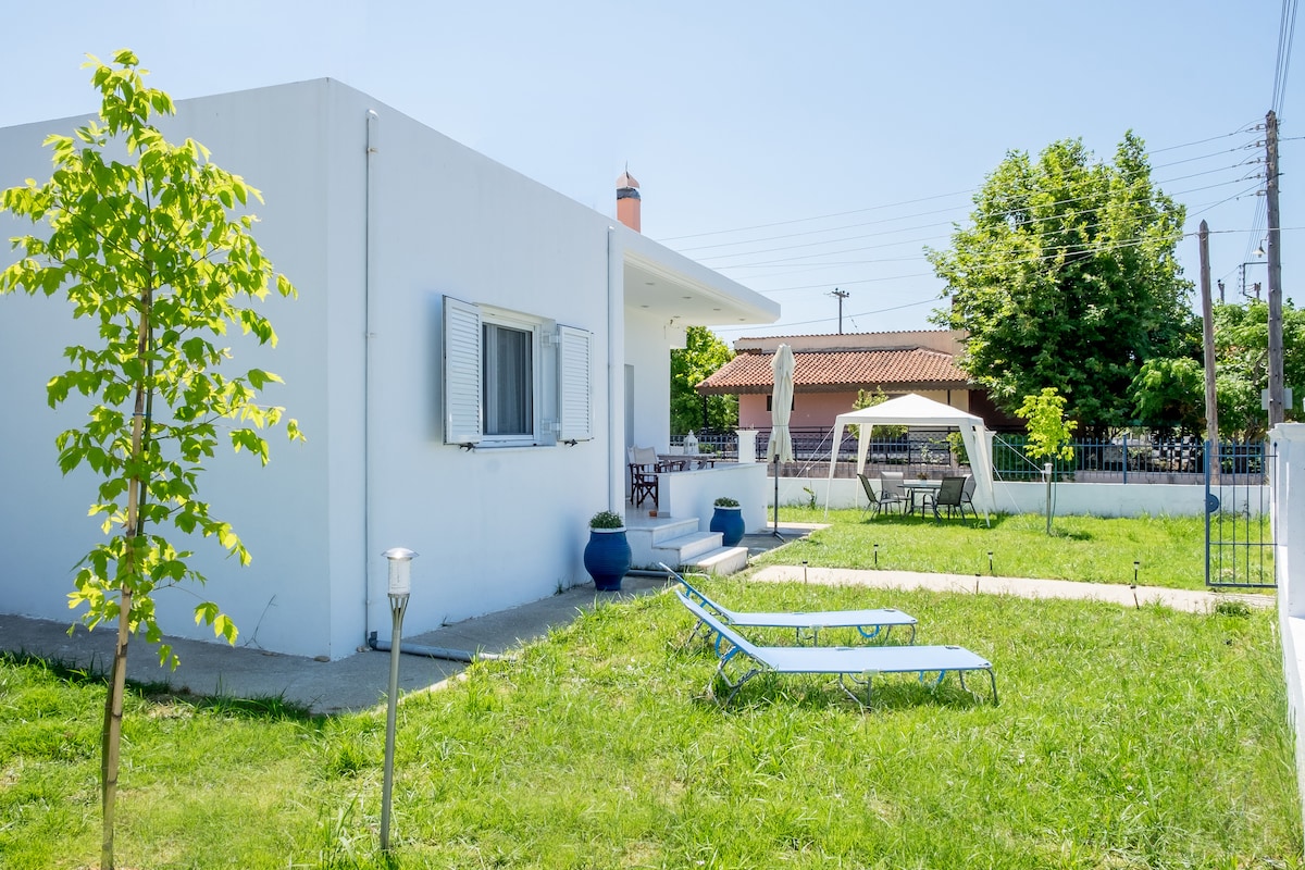 Kafedən və çimərlik barından150 metr məsafədə, mənzərənin yaxınlığında rahat bir ev. Prevezadan 13 kilometr, hava limanından isə 18 kilometr məsafədə yerləşir. Bura ailəniz üçün təhlükəsiz yerdir.