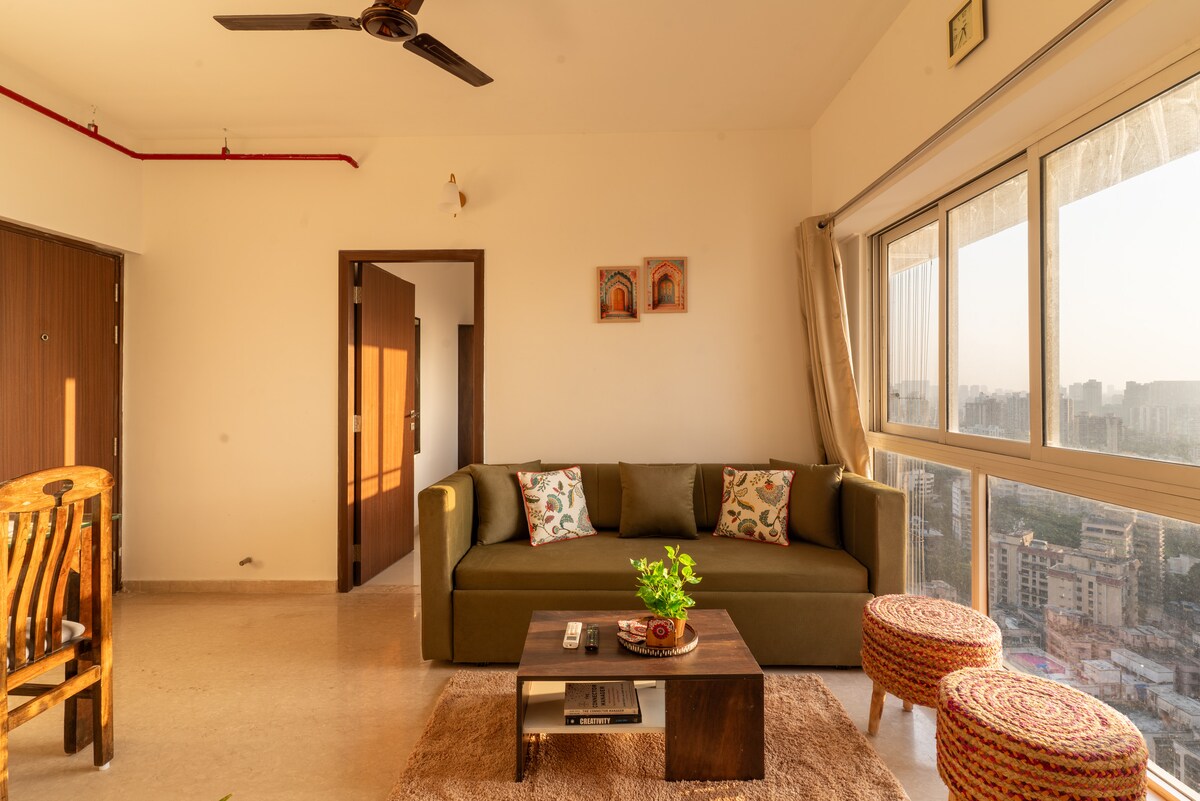 Bliss your Stay @ Skyline Bliss a chic city escape! 🪁 Enjoy the convenience & unmatched connectivity within Mumbai at this 1BHK apartment. The space treats you with amazing views of city skyline & lets you experience the fast track energy of Mumbai while making it an ideal choice for Families, Couples & Business travellers. Thoughtfully designed with modern décor to ensure a comfortable stay, Skyline Bliss blends prime location with a warm, welcoming vibe to elevate your stay🌟