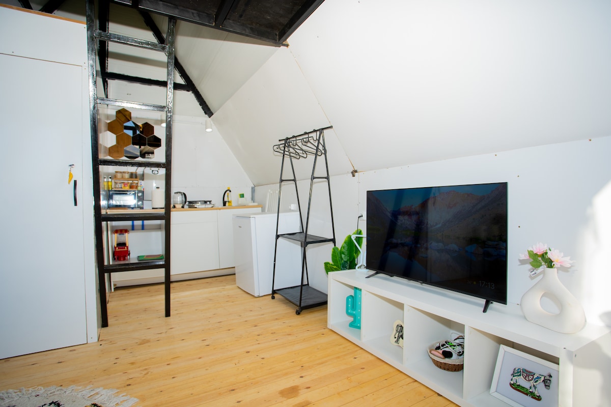 Dam örtüyü 3-cü mərtəbədə yerləşir: 👉🏻yataq otağı, mətbəx , qonaq otağı, tualet və terrasdan ibarətdir qonaqlamanıza romantik bir toxunuş əlavə edərək açıq havada film gecələrindən👉🏻 zövq alın. qonaq otağında, yataq otağında filmə baxa və ya ulduzların altında sehrli atmosfer yarada bilmək üçün mobil datashow ilə👉🏻 təchiz olunub. Terrasın hər iki tərəfindən dağların panoramik mənzərəsi👉🏻 ilə burada keçirilən hər an əsl tilsimdir