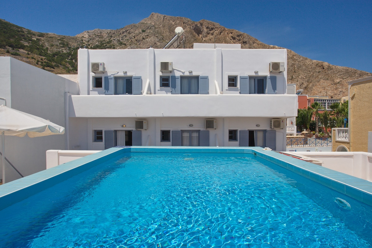 Fantastik bufet səhər yeməyi və Oia şəhərinin ən böyük hovuzlarından birinə çıxışı olan kiçik otelin büdcə ikinəfərlik yataq və səhər yeməyi üslubunda otaq hissəsi. Kaldera qayasından, mavi günbəzlərdən və şəhər mərkəzindən cəmi bir neçə dəqiqəlik məsafədə yerləşir. Otaq kondisionerlidir, ayrıca batrhoomu var, imkanlar, yataq dəsti, duş və hovuz dəsmalları təmin edilir.