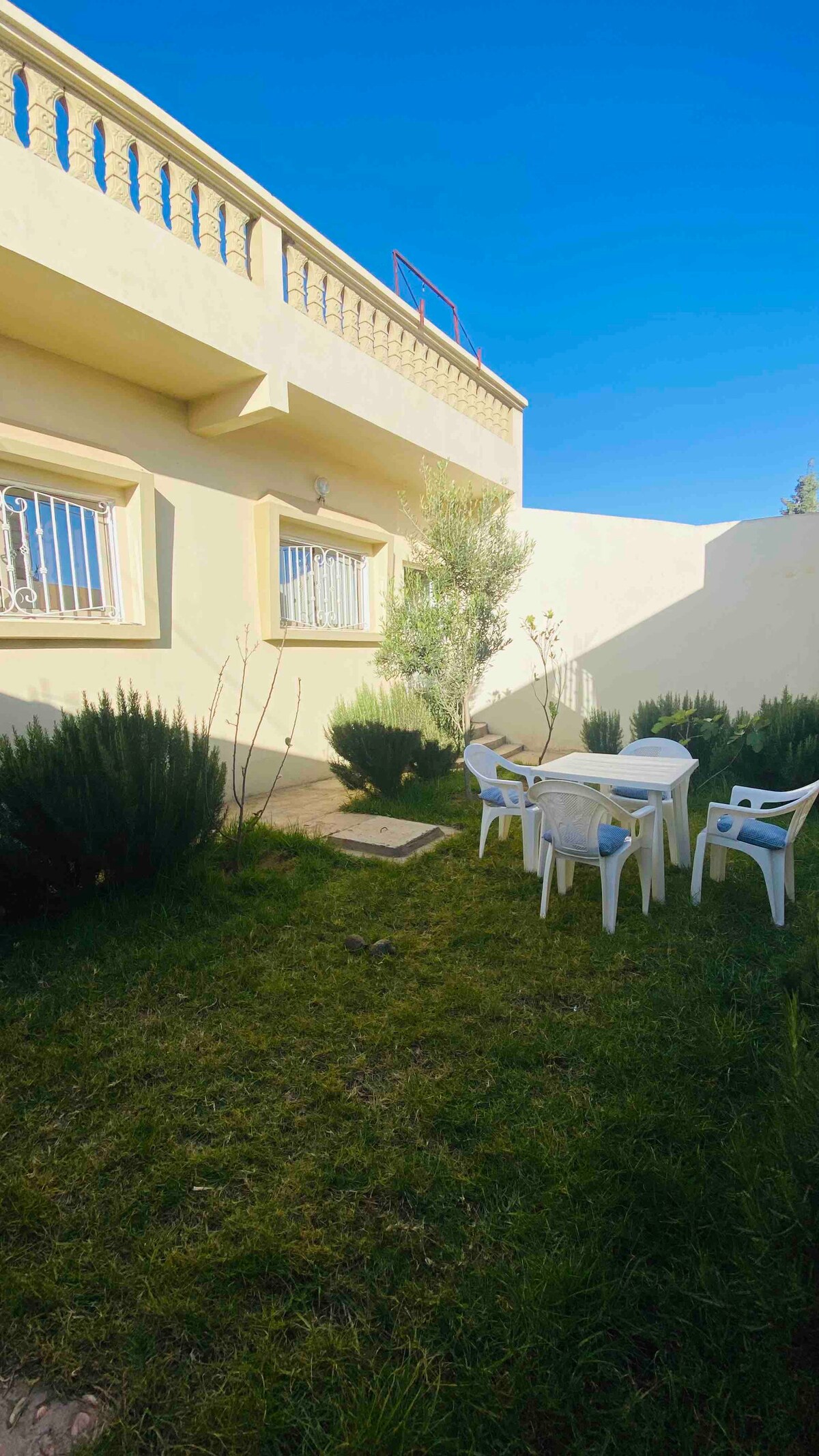 Oualidia Şəhərindən avtomobillə 10 dəqiqəlik məsafədə yerləşən, okeanın və duz bataqlıqlarının möhtəşəm mənzərələrini təklif edən zərif, tam təchiz olunmuş ev-villa kirayə verilir. Bu, biri möhtəşəm okean mənzərəli, biri girişdə, biri isə damda kölgəli olmaqla 3 terrasdan ibarət gözəl bir evdir.
