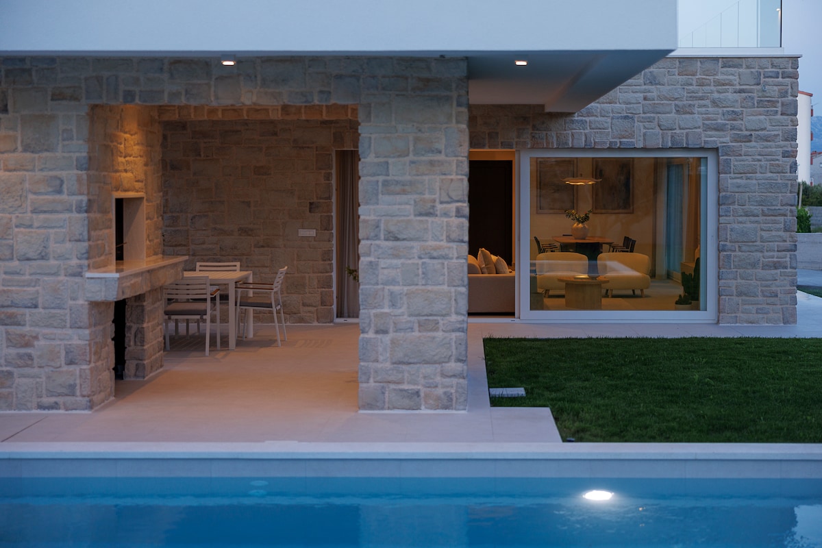 Luxury 2024 Villa with Heated Pool & Sauna – Walk to the Beach Welcome to your private oasis in Kaštel Štafilić – a brand new (2024) modern villa designed for comfort, relaxation and unforgettable Mediterranean holidays. Located just 400 mtr (5min walk)from the beach and only 5 minutes from Split Airport, the villa offers the perfect balance of convenience and privacy. Whether you are two families, a group of friends, or looking for a luxury escape near Split and Trogir – this home delivers.