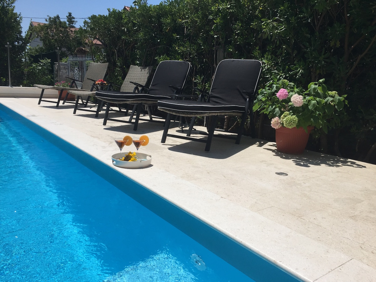 3minute drive to the airport.Apartment is located on second floor of a family house. It has big living area, perfect for family with kids and people wanting to have some rest before the airport. Big back garden and opened area. Kitchen with everithing you need for cooking.Free WIFI and parking space. If needed FREE airport transfer. And if you are staying more than a week A traditional dalmatian meal on the house made in stone fireplace.