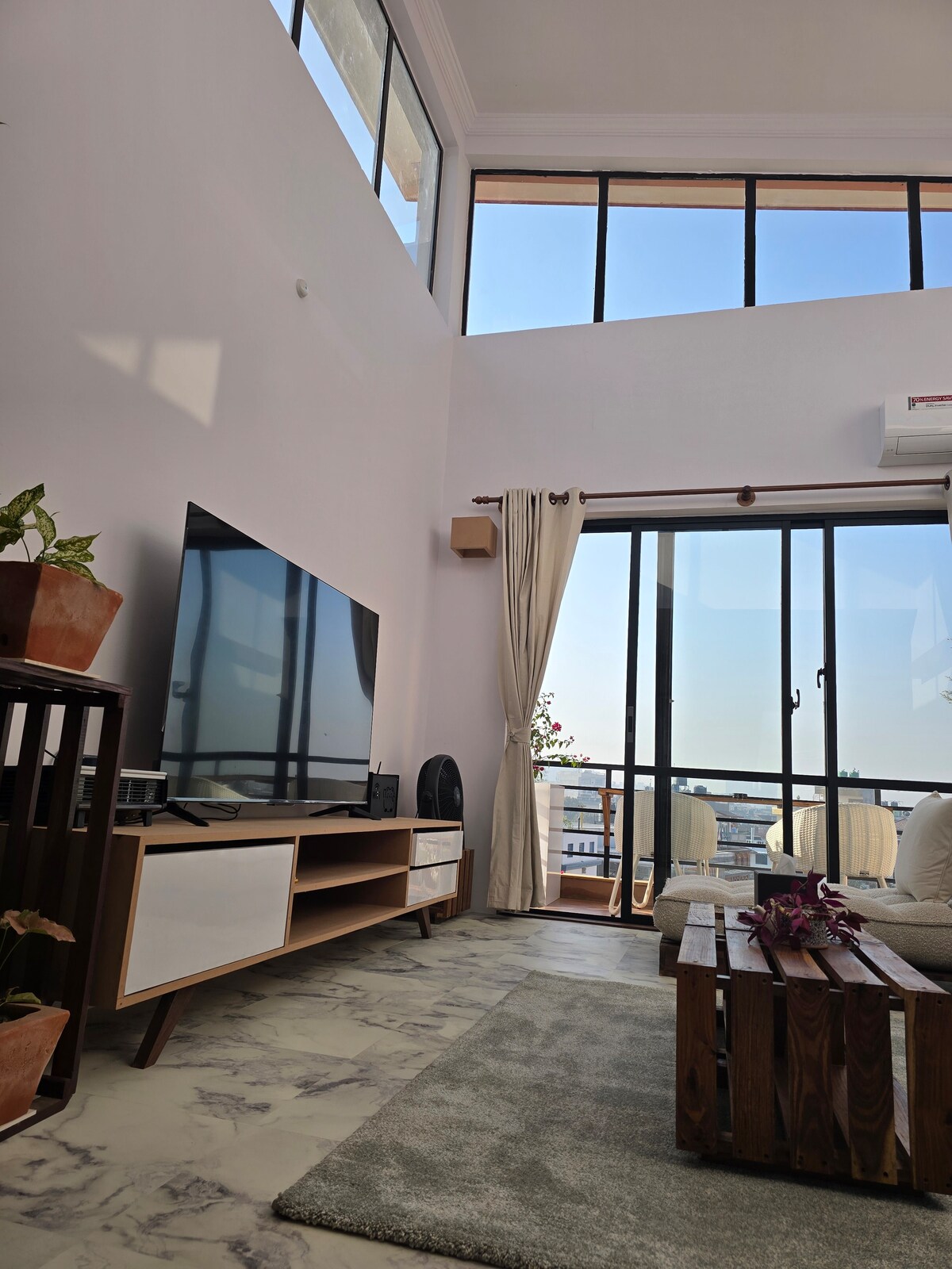 Saalunun müasir MƏNZİLİ günəş işığının vurduğu və bütün mənzili işıqlandırdığı hündür tavandan ibarətdir. Bir əlavə QUTU otağı, tam təchiz olunmuş mətbəxi, açıq havada mebeli və ayrıca dam örtüyü olan 1BHK-dan ibarət olan geniş mənzilimizdə keçirdiyiniz vaxtdan zövq alın. Üst mərtəbədəki dəbdəbəli interyerimiz və son məxfiliyimizlə özünüzü şəxsi eviniz kimi hiss edəcəksiniz.