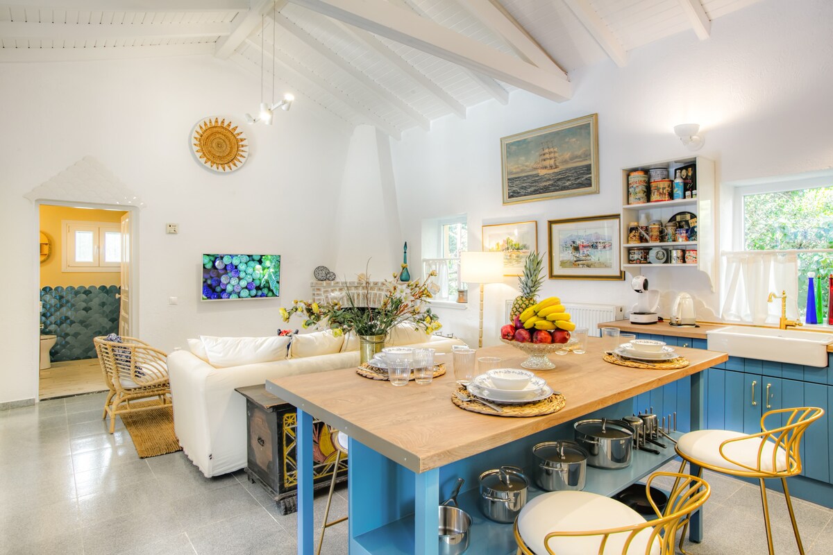 Our Villa is located close to the seaside village of Mesonghi in the southern part of the island. The ground floor has two bedrooms, a living room, two bathrooms, and a fully equipped kitchen that includes everything you need for a comfortable and pleasant stay. The house has a very beautiful scenic view of the bay of Mesonghi as well as of the surrounding green landscape with olive and cypress trees. Also has free Wi-Fi, A/C, Netflix, and a 4.5-meter round pool in the garden of the house.