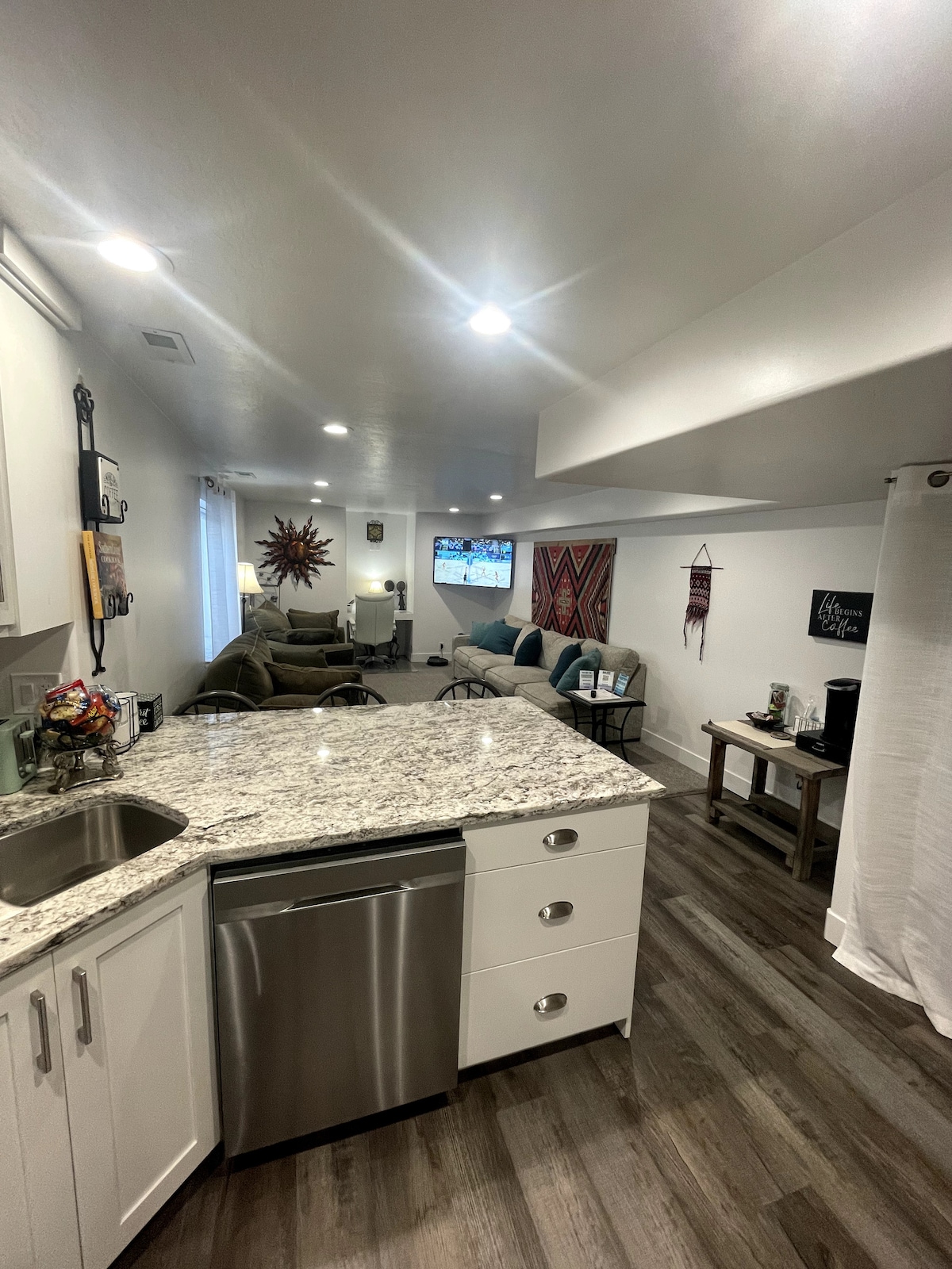 Live like a local in this spacious 3 bed suite with private entrance, fast internet, fully stocked kitchen, laundry, 70″ Smart TV, EV charger, and off-street parking. Ideal for families, groups, or remote work. Tons of amazing reviews and only 20 mins to the SLC airport! The suite is in a quiet cul-de-sac that is just minutes to trails, ski resorts, shopping, and downtown SLC. Family friendly, with workspace and comfort for every guest — enjoy convenience, adventure, and a stay you’ll remember!