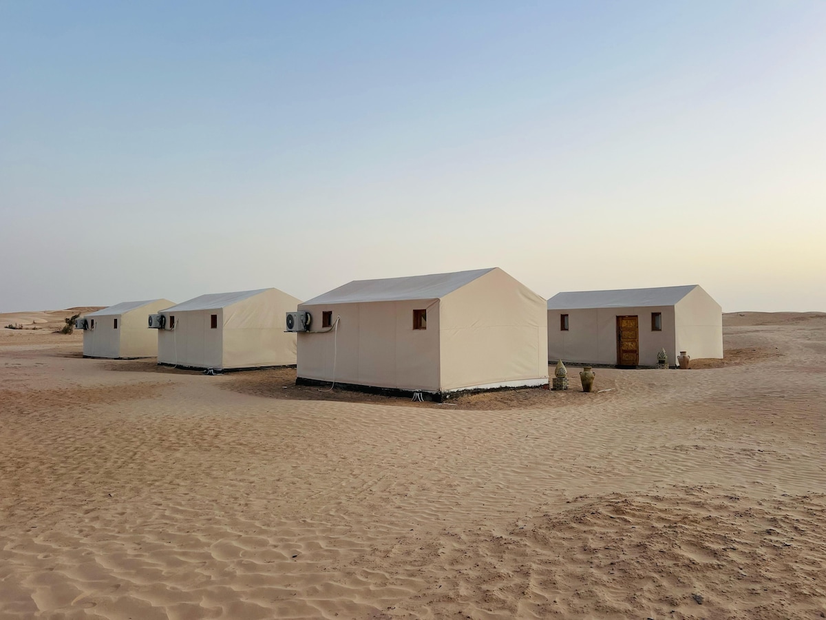 Səhranın mərkəzindəki lüks süita çadırımızda unikal təcrübə yaşayın. Təbiətə qərq olaraq şəxsi tualet ilə müasir komfortlardan zövq alın. Ənənəvi şam yeməyini, qum qabını dadın və folklor animasiyasından zövq alın. Axşam saatlarını ulduzlu səma altında düşərgə yanğını ətrafında keçirin. Səhər tezdən günə əla başlamağınız üçün sizi ləzzətli səhər yeməyi gözləyir. Səhranın mərkəzində sizi unudulmaz bir macəra gözləyir.