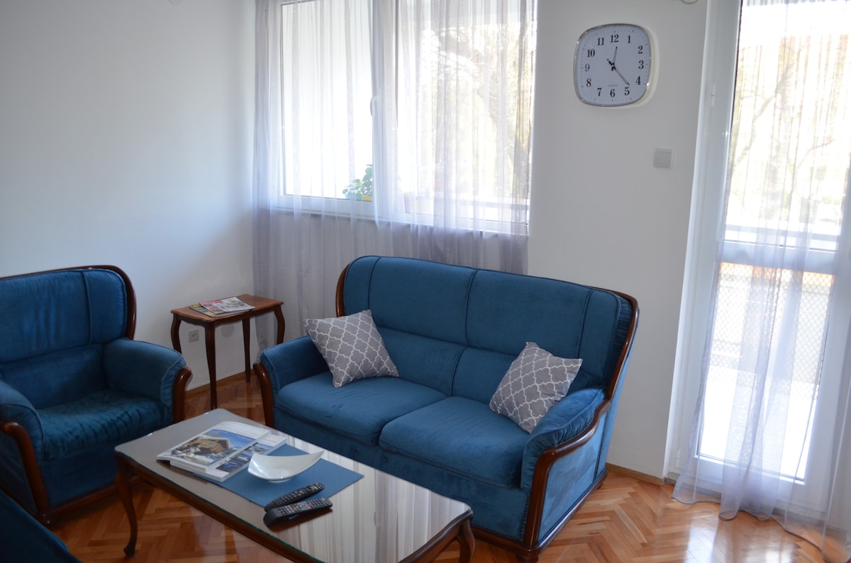 Ailələr, işgüzar səyahətçilər və turistlər üçün rahat iki yataq otağı olan rahat mənzil. Bura Podqoritsanın biznes və ticarət mərkəzində yerləşir. Wi-Fi və kabel televiziyası ilə təchiz olunub. Pulsuz parkinq daxildir. Mağaza və restoranlara yaxındır. Məsih Məbədi mənzil binasının düz yanında, Podqoritsa Hava Limanı mənzildən 14 km aralıda yerləşir. İki böyük ticarət mərkəzi mənzildən 15 dəqiqəlik məsafədə yerləşir. Şəhər vergisi qiymətə daxil deyil və adambaşına günlük 1 avro təşkil edir.