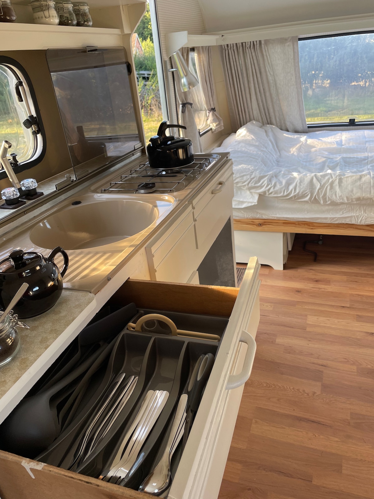 Çimərliyin yanında unikal vintaj hava axını karvanı