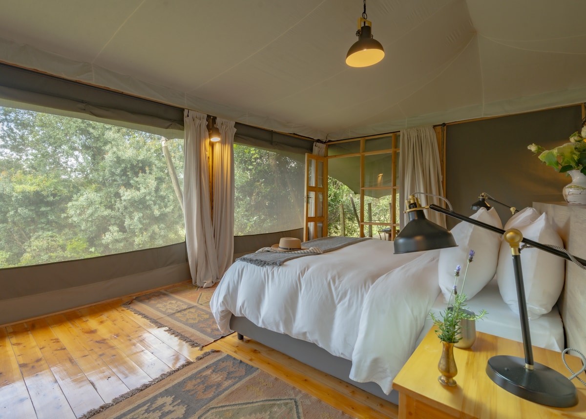 Enjoy the healing seclusion of this luxury safari tent nestled privately in a forest of indigenous trees. Treat your body and soul to supreme relaxation in the sunken outdoor bath tub with sweeping views of the Malewa River. Release tension as you enjoy the magnificent sunset and unpolluted night skies. Immerse yourself in the beauty of land, sky and water, basking in the pure air and unmatched sunlight of the equatorial highlands. Glamping at its absolute finest!