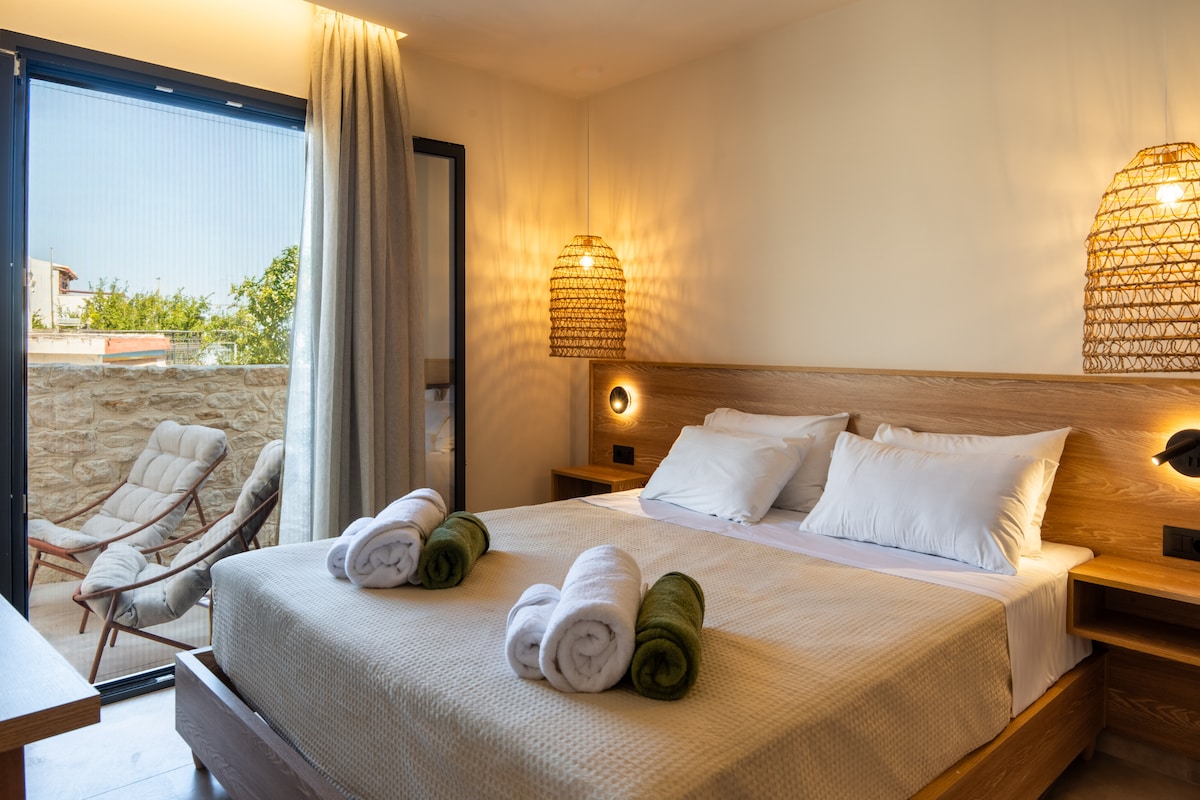 Hersonissos çarpıcı Beach Rivera-da göy mavi dənizin yanında xüsusi bir yer olan Seafront Suites-ə qaçın. Panoramik mənzərələri və qürubları olan sakit və tənha bir körfəzdə yerləşən dünyanın qalan hissəsi mövcud deyil, bu sizə maneələrinizi buraxmaq və bu an üçün yaşamaq azadlığı verir. Daha çox məlumat Bağ mənzərəli lüks Süitamız son dərəcə rahat qonaq otaqları, torpaq tonları və müasir toxunuşları ilə zehni sakitləşdirmək və ruhu isitmək üçün müasir və minimalistdir.
