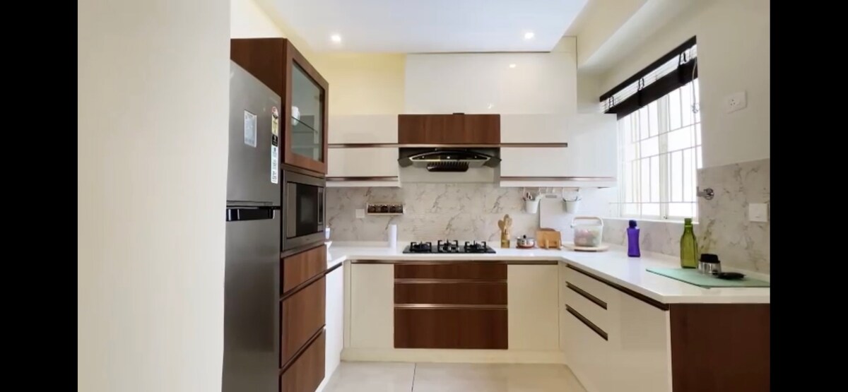 Etibarlı otel şəbəkəsinin bir hissəsi olan Koçidəki 2BHK otel xidmətləri təklif edən mənzilimizdə rahatlıq və üslubu təcrübədən keçirin. Estetik toxunuşla dizayn edilmiş bu məkanda müasir divanı olan rahat qonaq otağı, tam təchiz olunmuş mətbəx, paltaryuyan maşın və xüsusi iş sahəsi var. Rahatlığınız üçün bütün kondisionerli geniş yataq otaqları qəşəng hamam otaqları ilə təmin olunur. Böyük LED televizorda Netflix, YouTube və daha çoxu ilə əylənin. Otel dərəcəli xidmət ilə ev istiliyini qarışdıraraq həm qısa, həm də uzun müddətli qonaqlamalar üçün mükəmməldir.