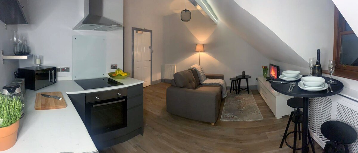 Bu yaxınlarda təmir edilmiş bir yataq otaqlı mənzil, rahat şəkildə Kesvikin mərkəzində yerləşir və küçə parkinqində pulsuzdur. Əla pablar, gözəl yeməklər və əyləncələr də daxil olmaqla Kesvikin təklif etdiyi hər şeyə daxil olmaq üçün daha rahat yerləşə bilməzdiniz. Hər şey çox asan gəzinti məsafəsindədir. Həmçinin qapınızın ağzında bütün yaş və bacarıqlara uyğun gəzintiləri olan fantastik kəndləri kəşf etmək üçün əla baza. Skiddaw və Latrigg üzərindəki mənzildən görünən mənzərə heyrətamizdir
