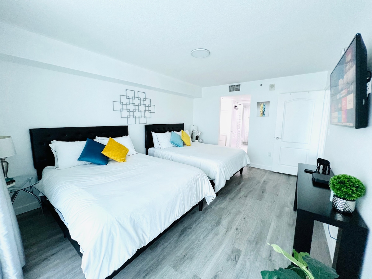 Müasir incəsənət nümunələri ilə əhatə olunmuş dəbdəbəli 43-cü talvarda qalın, kurort üslubunda imkanlara malik heyrətamiz okean mənzərələri ilə Mayamidən zövq almaq üçün mükəmməl bir yer ✔Əsas yataq otağı: kral çarpayısı, gəzinti dolabı, hamam və vanna ✔Qonaq otağı: 2 kraliça çarpayısı, ayrıca hamam otağı ✔Tam təchiz olunmuş Mətbəx, TV, Divan, Paltaryuyan və Fen Barbekü ilə✔ ikiqat göyərtə terrasları ✔2 Sonsuzluq Hovuzu və Cakuzi ✔İdman zalı, Tennis, Basketbol və skvoş meydançaları ✔Yüksək sürətli Wi-Fi ✔Çimərlik/Çimərlik Klubuna 5 dəqiqəlik gəzinti Aşağıda daha çoxuna baxın!